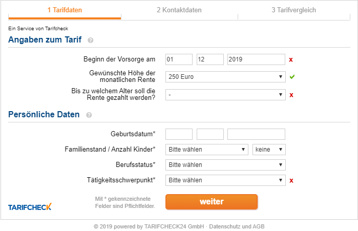 2) Die Angaben werden automatisch in den Vergleichsrechner übernommen. Du überprüfst diese nur noch.